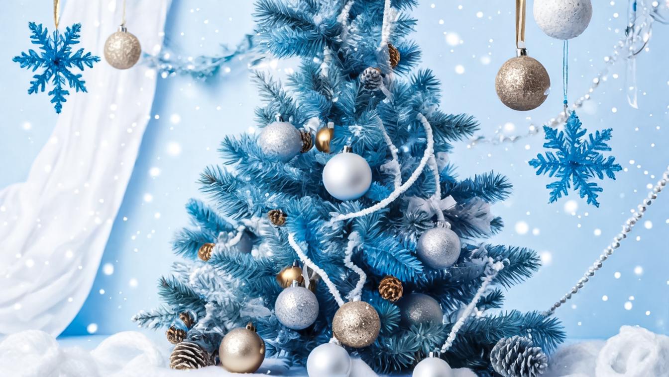 Les décorations auront alors une magnifique couleur argentée, grâce à laquelle vous créerez un contraste saisissant. Le bleu sera dans ce cas plus remarquable, surtout si vous y ajoutez de belles guirlandes lumineuses.